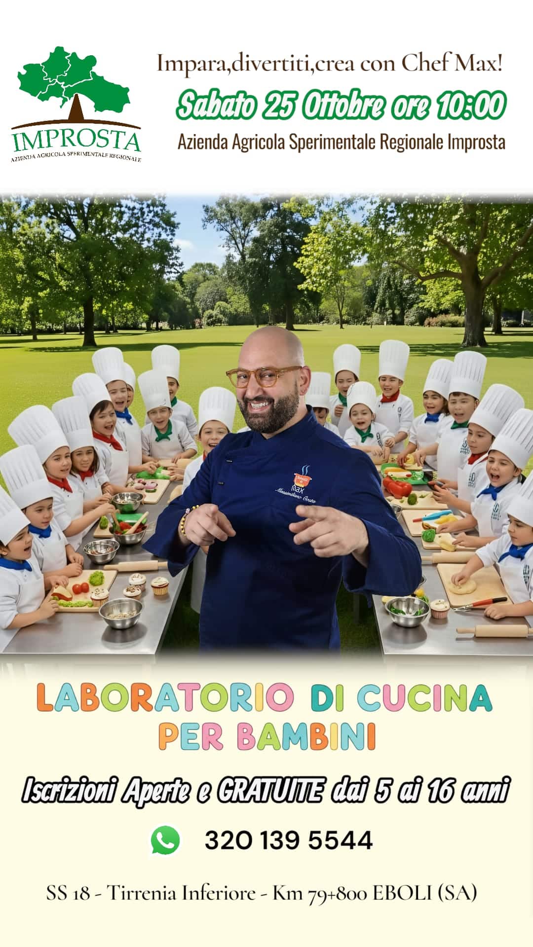 Sabato 25 Ottobre alle ore 10:00, vi aspetto all’Azienda Agricola Sperimentale Regionale Improsta di Eboli (SA) per un’esperienza indimenticabile: un laboratorio di cucina gratuito dedicato ai bambini dai 5 ai 16 anni!